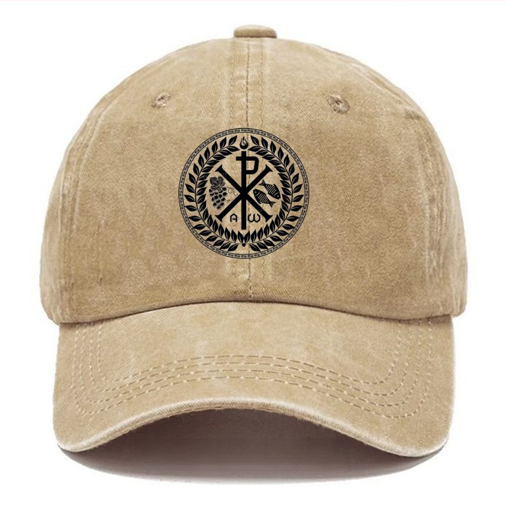 Chi Rho Christian Symbols Unisex Vintage Casual Washed Cap