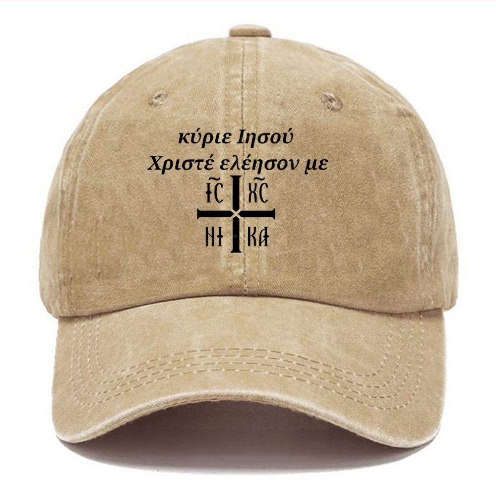 ICXC NIKA Orthodox cross and Greek prayers Unisex Vintage Casual Washed Cap