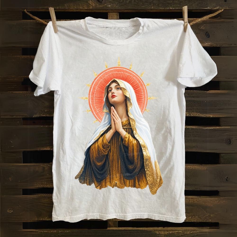 Catholic Watercolor Print of the Virgin Mary Cotton T-shirt