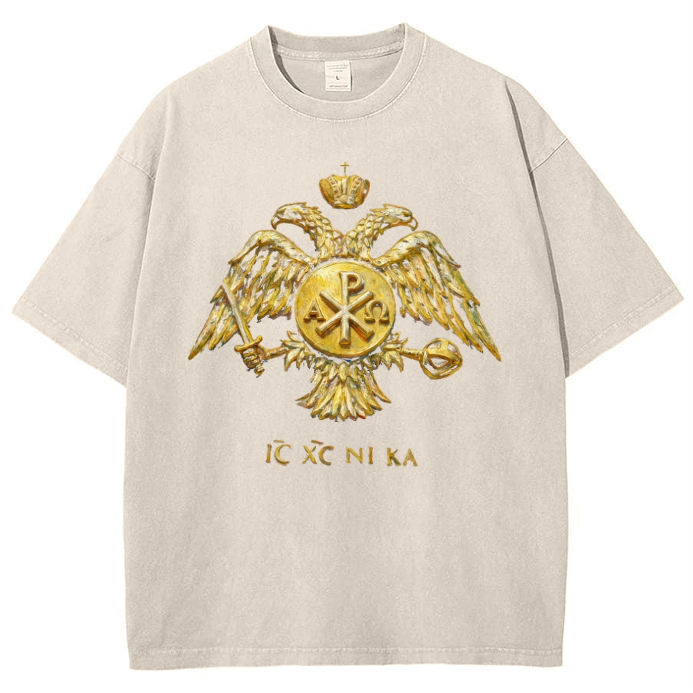 ICXCNIKA Orthodox Byzantine Eagle Snowflake Vintage Cotton T-Shirt