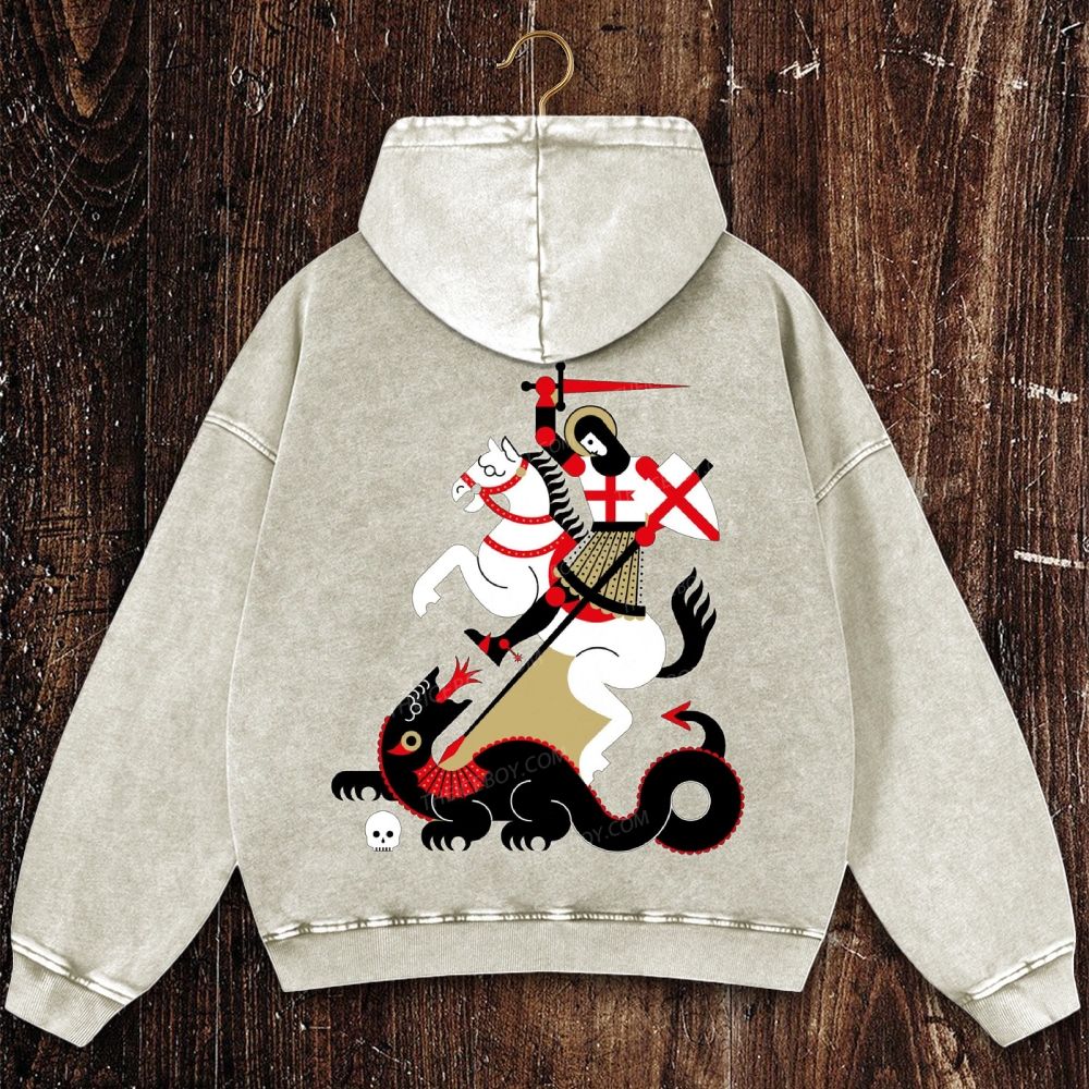 Saint George & the Dragon Christian Washed Hoodie