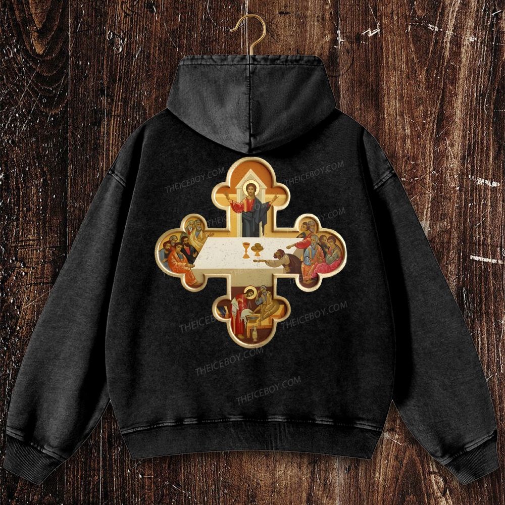 Icon of the crucifixion of Jesus Christ Christian Washed Hoodie