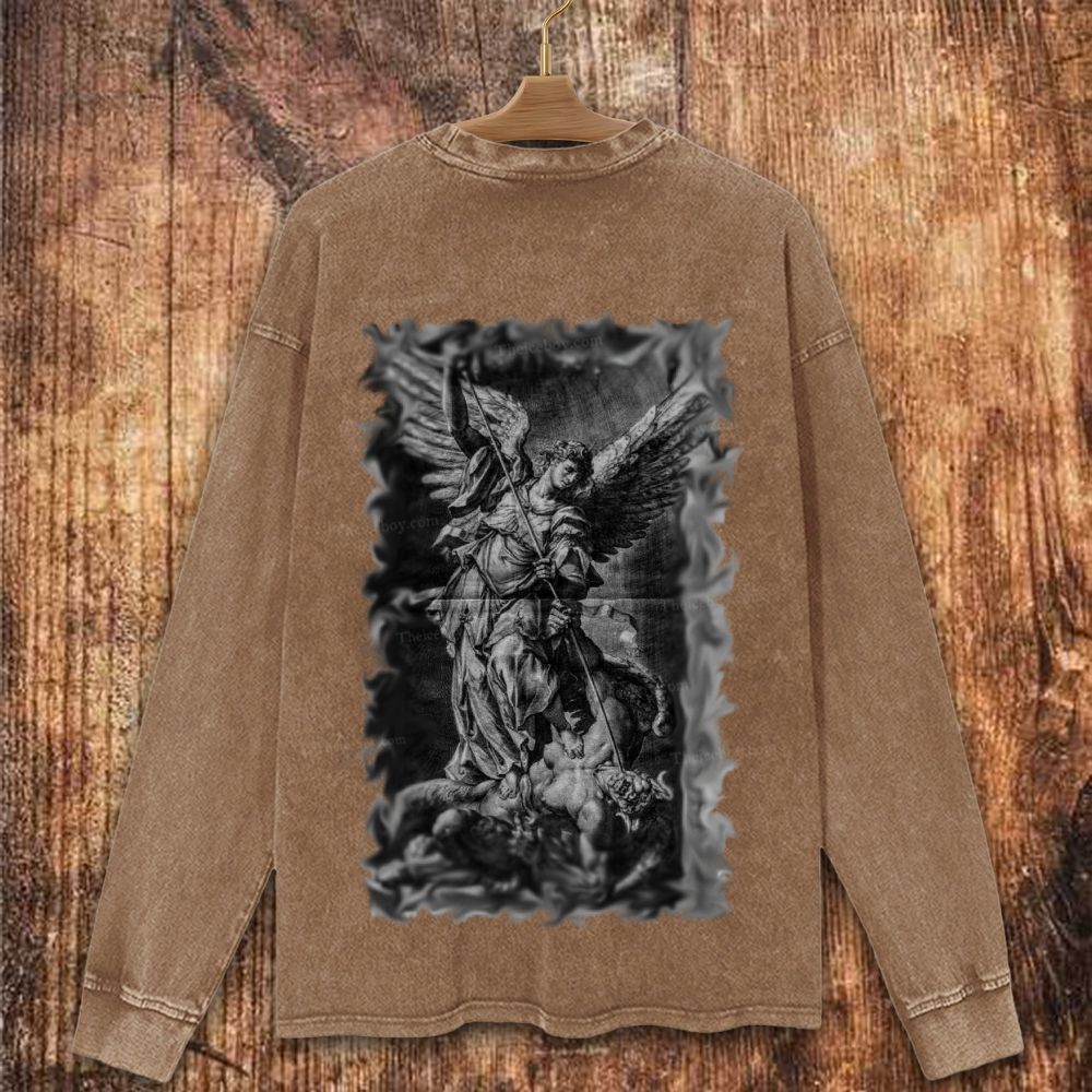 Archangel Michael defeats Satan Christian Washed Sweatshirt