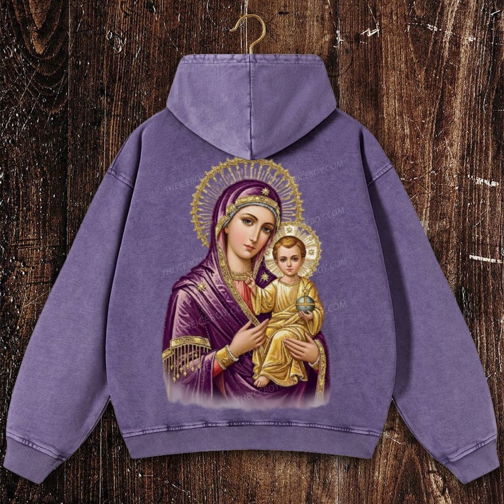 Blessed Virgin Mary Christian Washed Hoodie