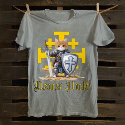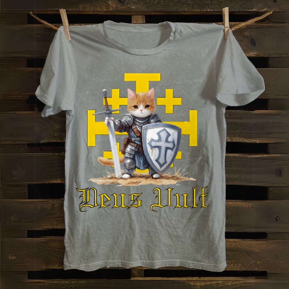 Deus Vult Crusader Cat Cotton T-shirt