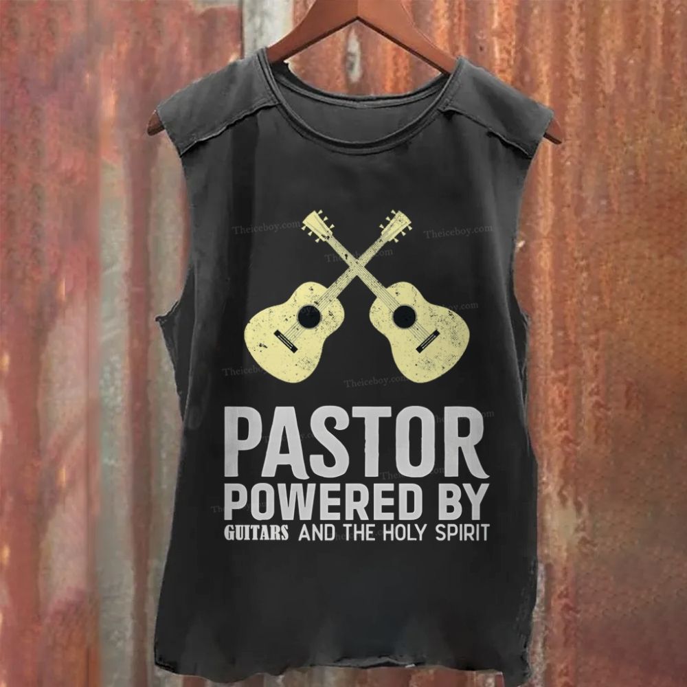 Pastor Powered Guitars And The Holy Spirit Washed Tank Top