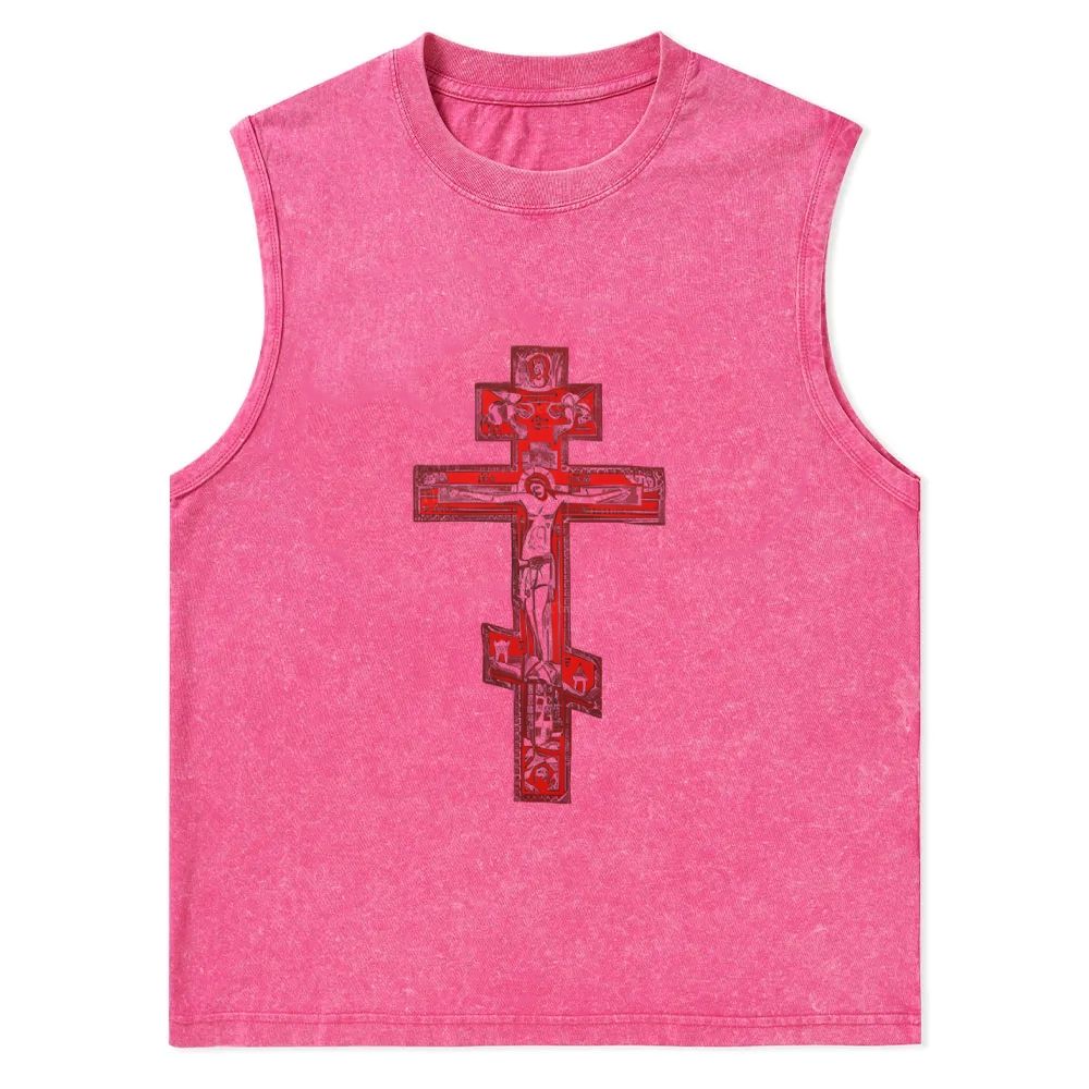 Russian Orthodox Three Bar Cross Christian Snowflake Washed Vest