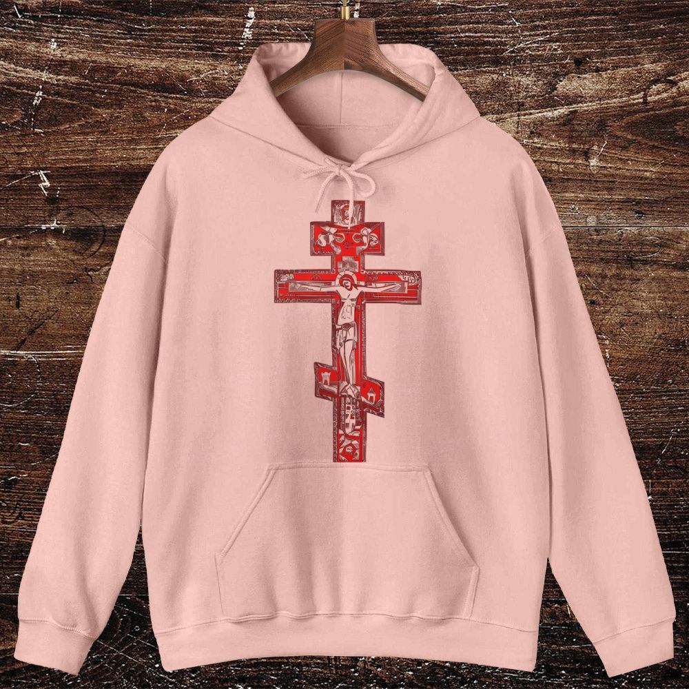 Russian Orthodox Three Bar Cross Oversized Cotton Hoodies