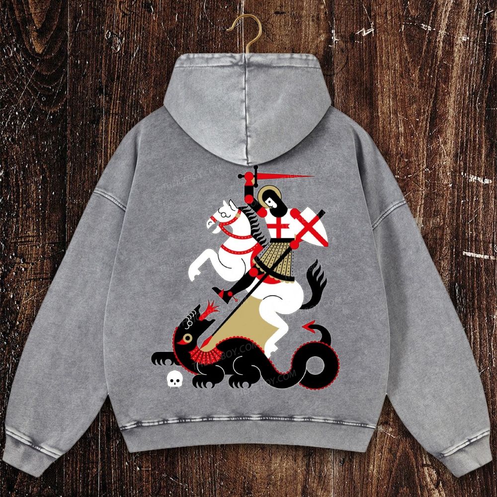 Saint George & the Dragon Christian Washed Hoodie