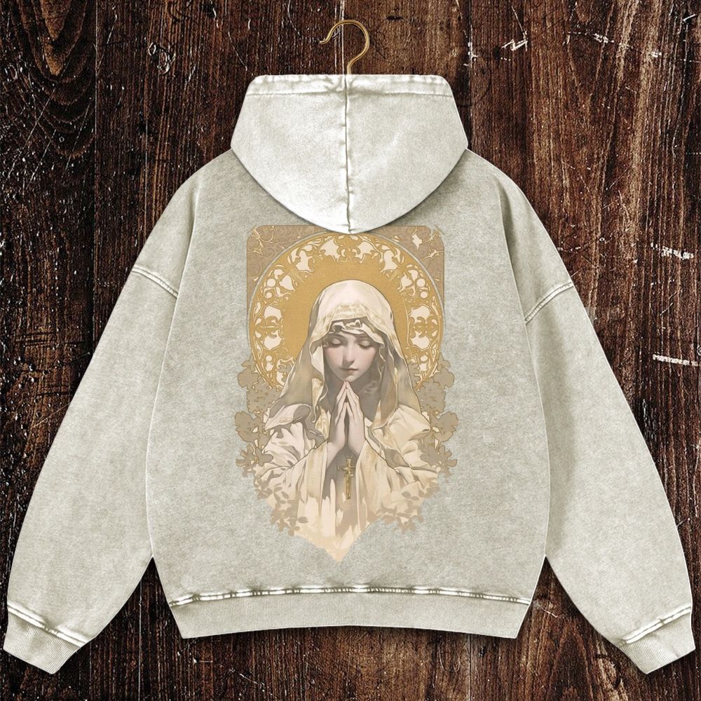 She Prayed To The Saint With All Her Heart. Christian Washed Hoodie